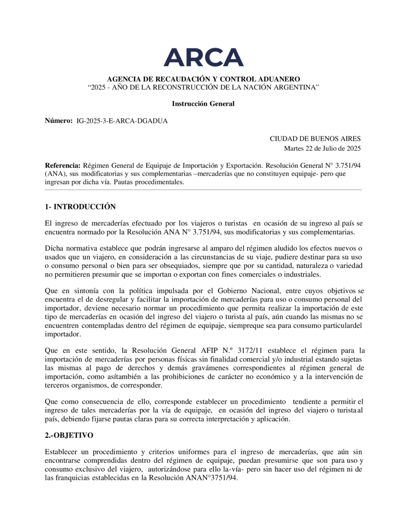 Los lineamientos detallados y el listado completo de mercaderías admitidas estarán próximamente disponibles en www.arca.gob.ar/viajeros.