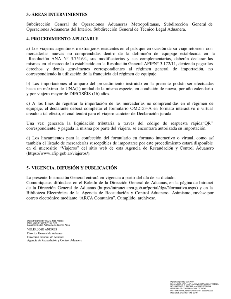 El sistema prevé un máximo de una unidad de la misma especie, nueva, por año calendario y por viajero mayor de 16 años. Para ello, será obligatorio completar el formulario OM2153-A, disponible en la página oficial www.arca.gob.ar, el cual funcionará como Declaración Jurada.